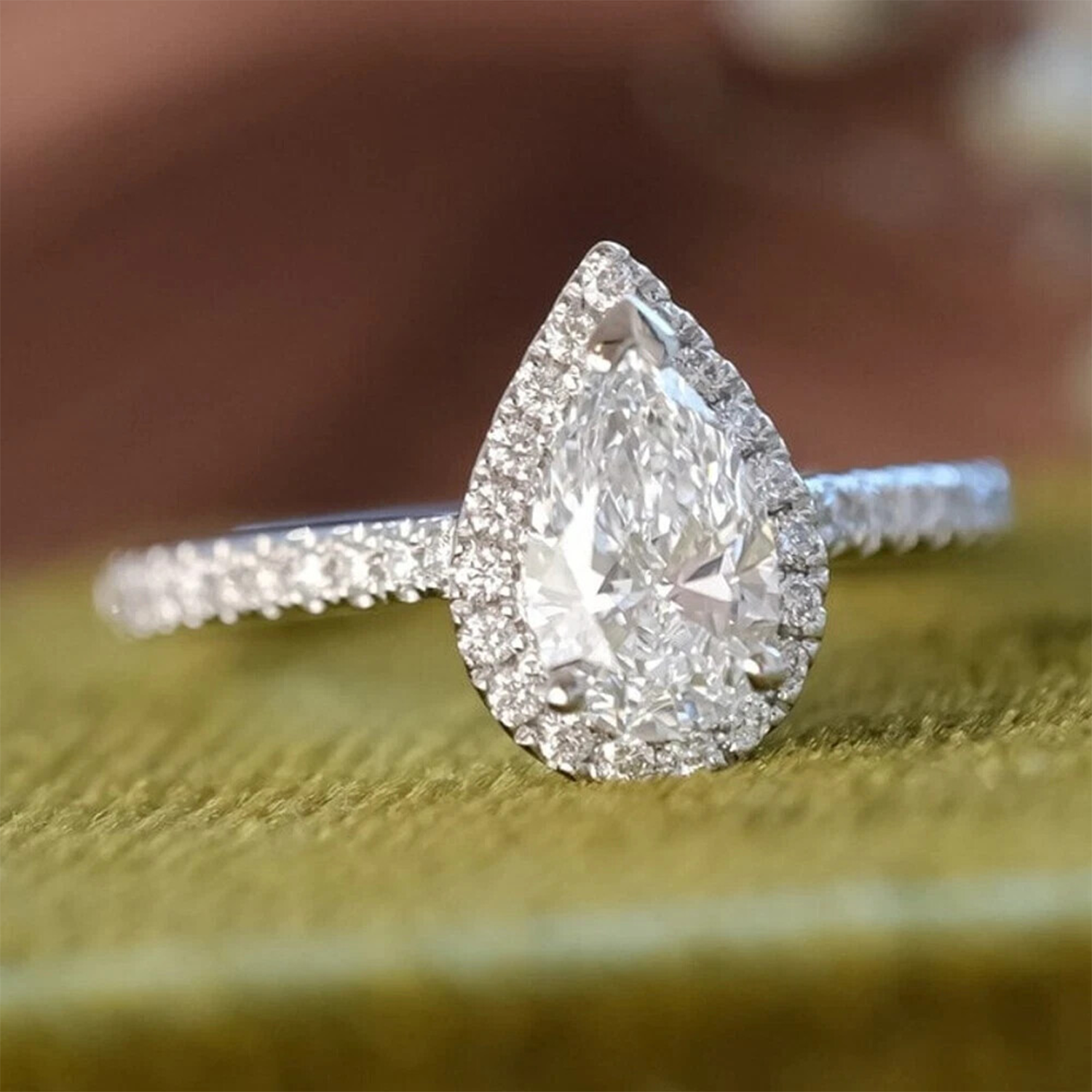 Raisove PT950鉑金 1cts 碎石水滴形培育鑽石戒指 E色(R-021)